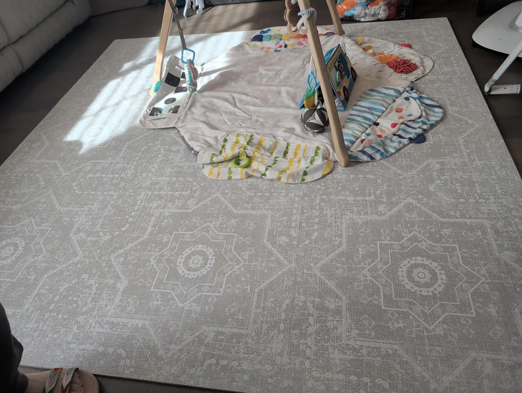Used to have a house of Noa mat. But the design started coming up- found this one and it’s the same quality if not better! This is the best dupe! Love that it looks like it’s a rug, people don’t believe it’s a play mat until they are on it. Makes the living room feel family friendly without looking like your kids have taken over.