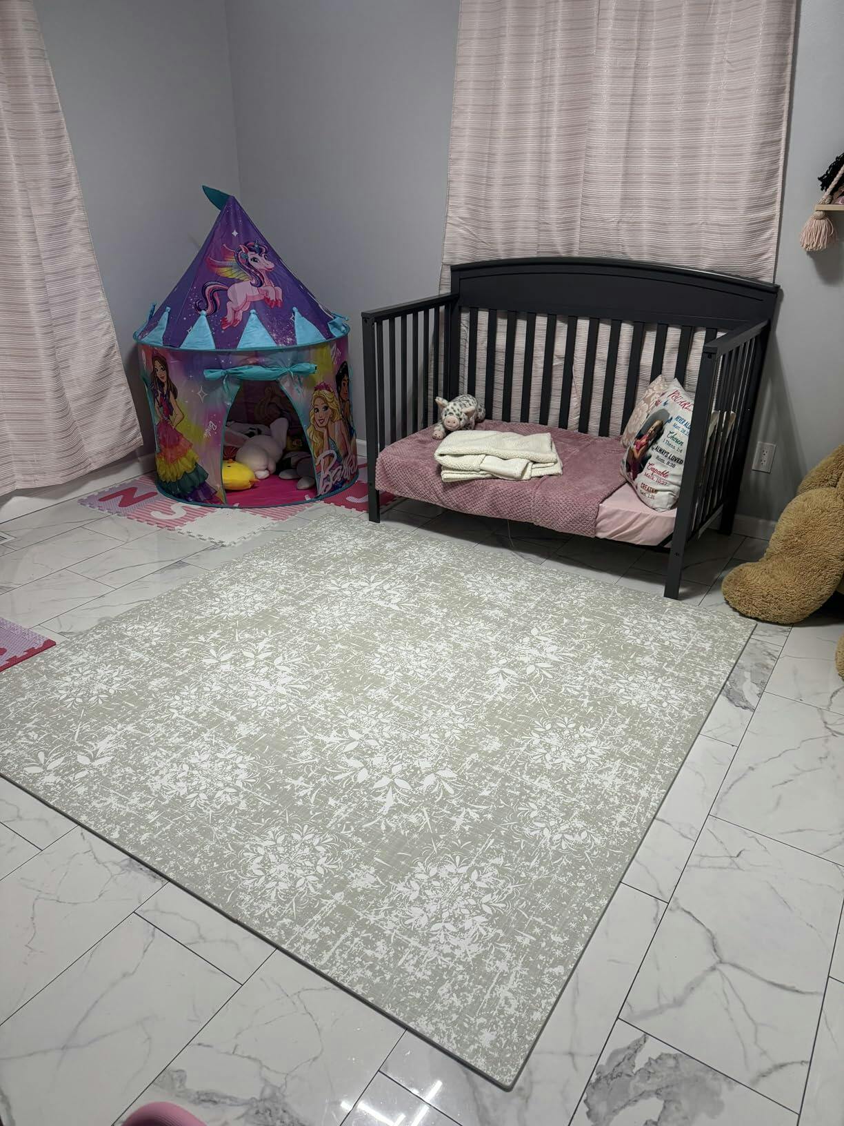 We use ours under a playpen, but it's versatile enough for any room. A bit on the pricier side, but the quality and coverage make it worth it.